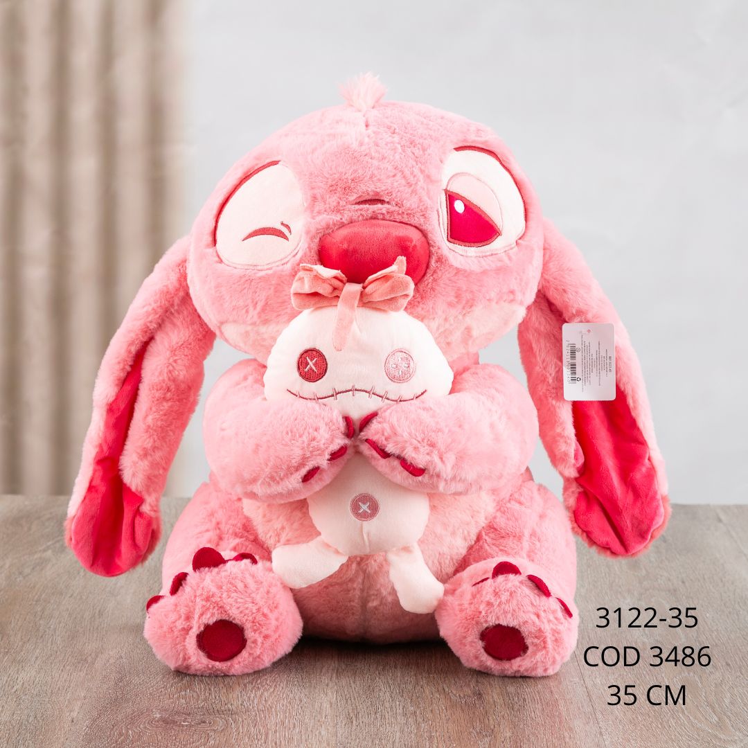 Peluche de Angel, la encantadora compañera de Stitch. Confeccionado con materiales suaves y de gran calidad, destaca por su color rosado y su diseño detallado que refleja dulzura y ternura. Ideal para coleccionistas o como un regalo especial para los amantes del universo Lilo & Stitch. 💗🌺