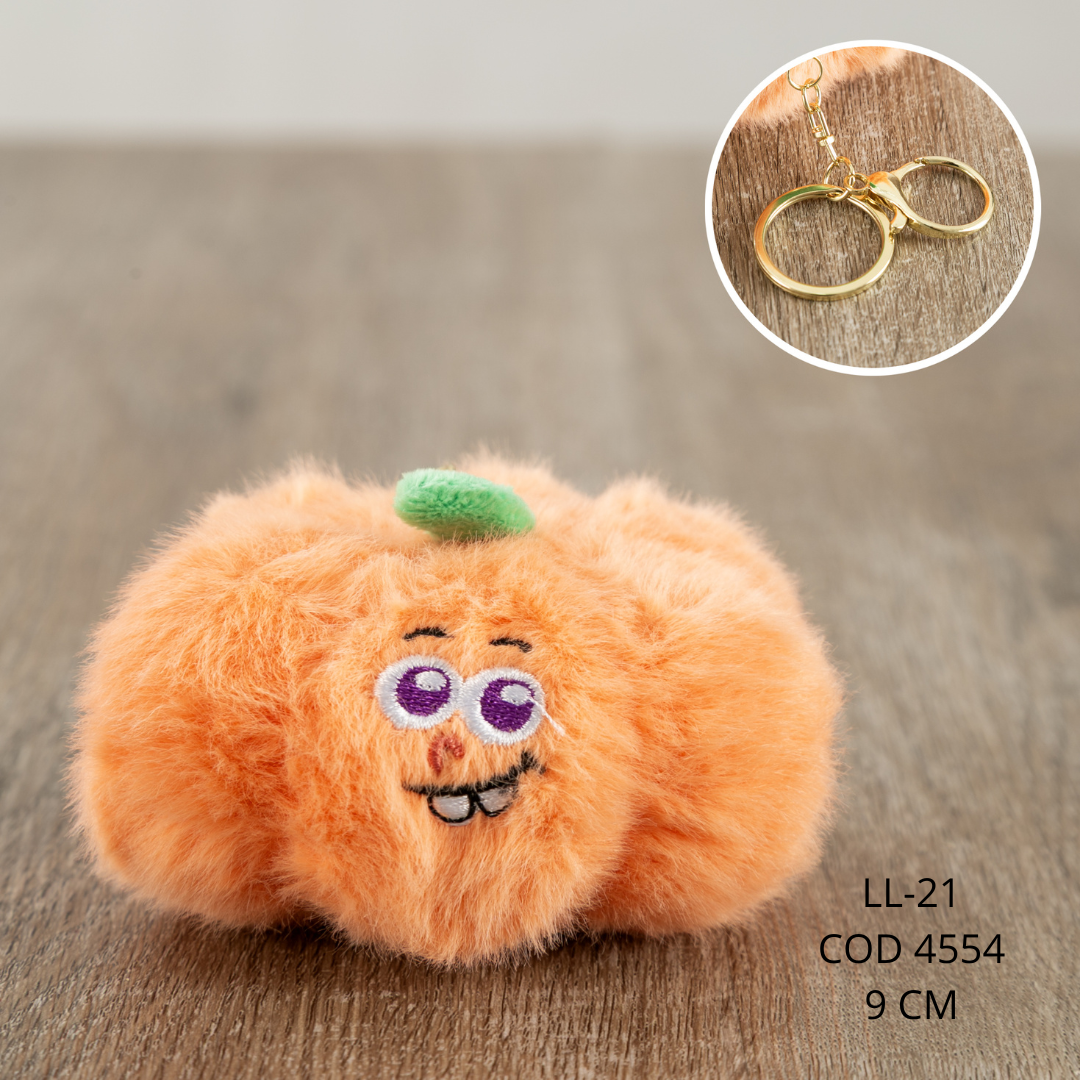Llavero de calabaza con carita, de diseño tierno y llamativo. Presenta una textura suave y agradable al tacto, con formas redondeadas y una expresión simpática que le aporta un estilo encantador. Su tamaño compacto lo hace ideal para llevar en llaves, bolsos o mochilas.