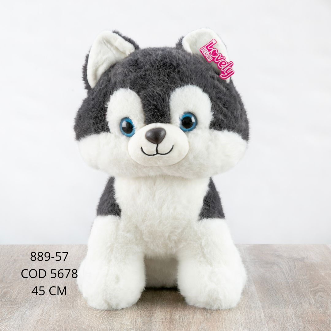 Un lobo de peluche de 45 cm 🐺🩶, en color gris oscuro, suave y esponjoso al tacto. Tiene un diseño detallado con ojitos expresivos y acabados que resaltan su forma. Es ideal para abrazar 🤗 y perfecto como detalle tierno 🎁.