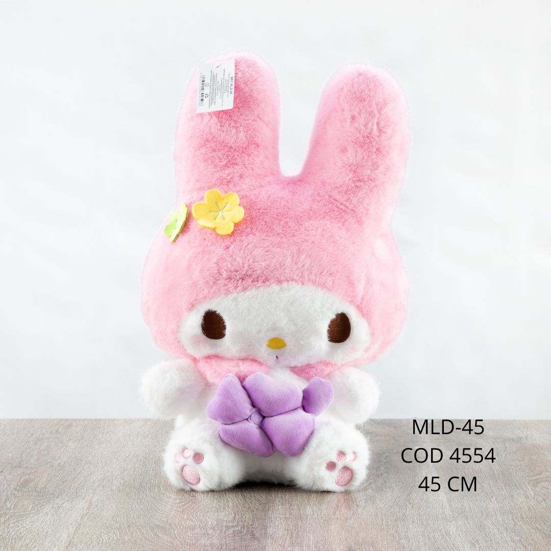 Un peluche de My Melody de 45 cm 🎀✨, suave y esponjoso al tacto, con un diseño tierno y encantador. Su tamaño lo hace perfecto para abrazar 🤗 y disfrutar aún más su suavidad. Con sus colores delicados y carita dulce 🥰, es ideal como un regalo especial 🎁💕.