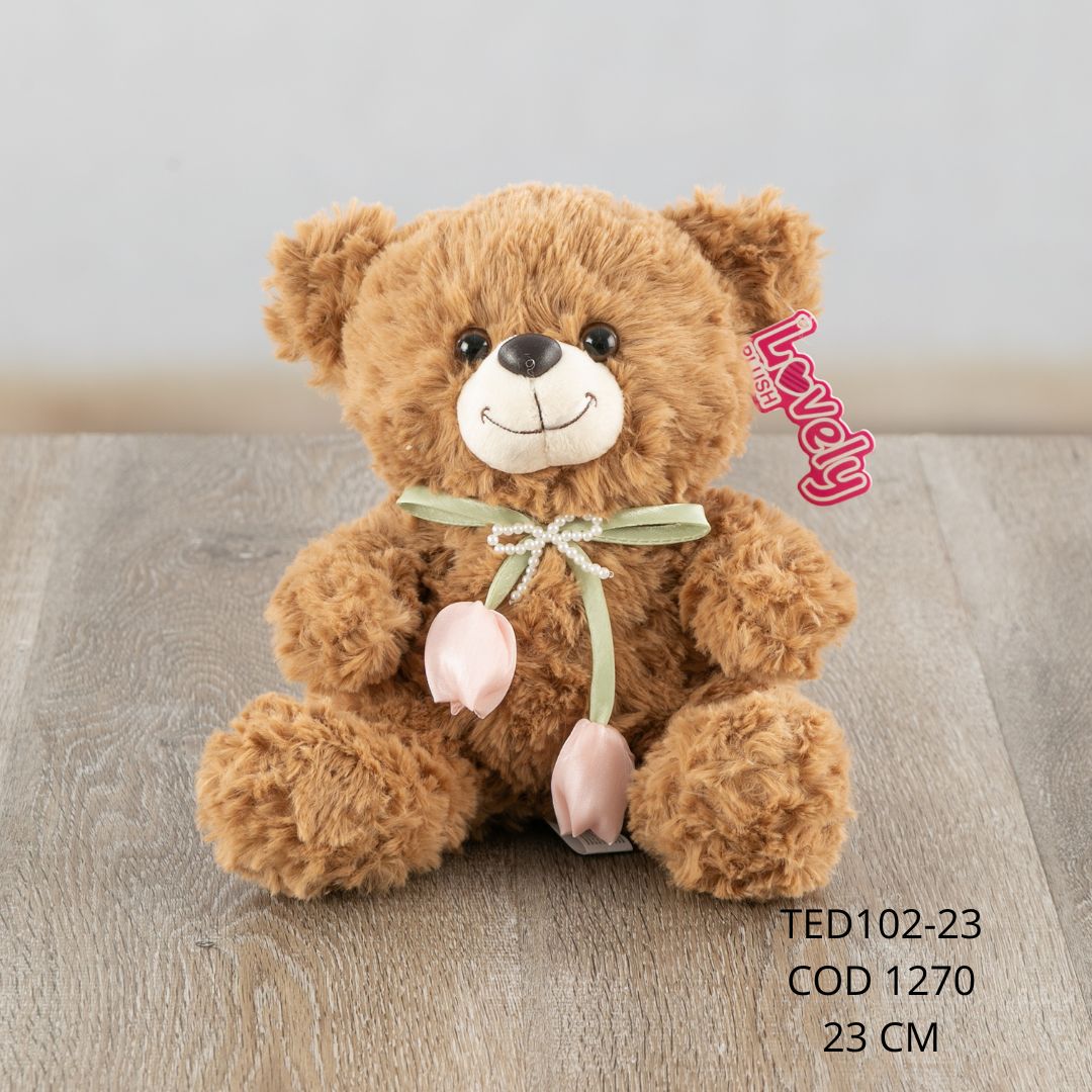 Peluche de oso con un delicado collar adornado con un tulipán, que añade un toque de elegancia y ternura. Elaborado con materiales suaves y de alta calidad, su diseño detallado lo convierte en una pieza ideal para regalar o decorar. Perfecto para expresar cariño con estilo y dulzura. 🧸🌷✨