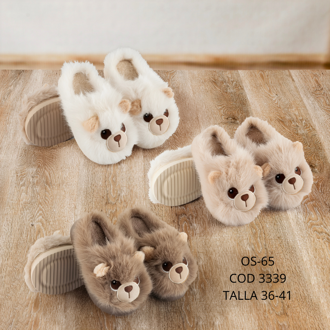 Pantuflas acogedoras con diseño de perrito, elaboradas en un material suave y esponjoso que brinda confort en cada paso. Su estilo tierno y sus detalles bien definidos las convierten en una opción perfecta para mantener los pies cálidos y con un toque divertido en casa. 🐶✨