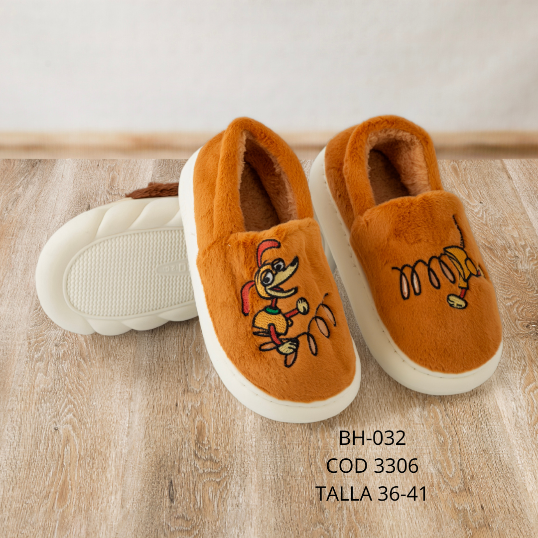 Pantuflas suaves con diseño de perrito alargado inspirado en el famoso Slinky, en color café oscuro, con carita tierna y detalles que le dan un estilo divertido y encantador. Interior acolchado para mayor comodidad y suela clara antideslizante, ideales para estar cómodo y abrigado en casa. 🐶🤎