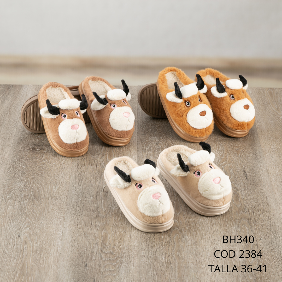 Pantuflas cálidas y suaves con un encantador diseño de reno. Su acabado esponjoso y los detalles decorativos les dan un estilo festivo y acogedor. Ideales para mantener los pies cómodos mientras añaden un toque tierno y navideño en casa. 🦌✨