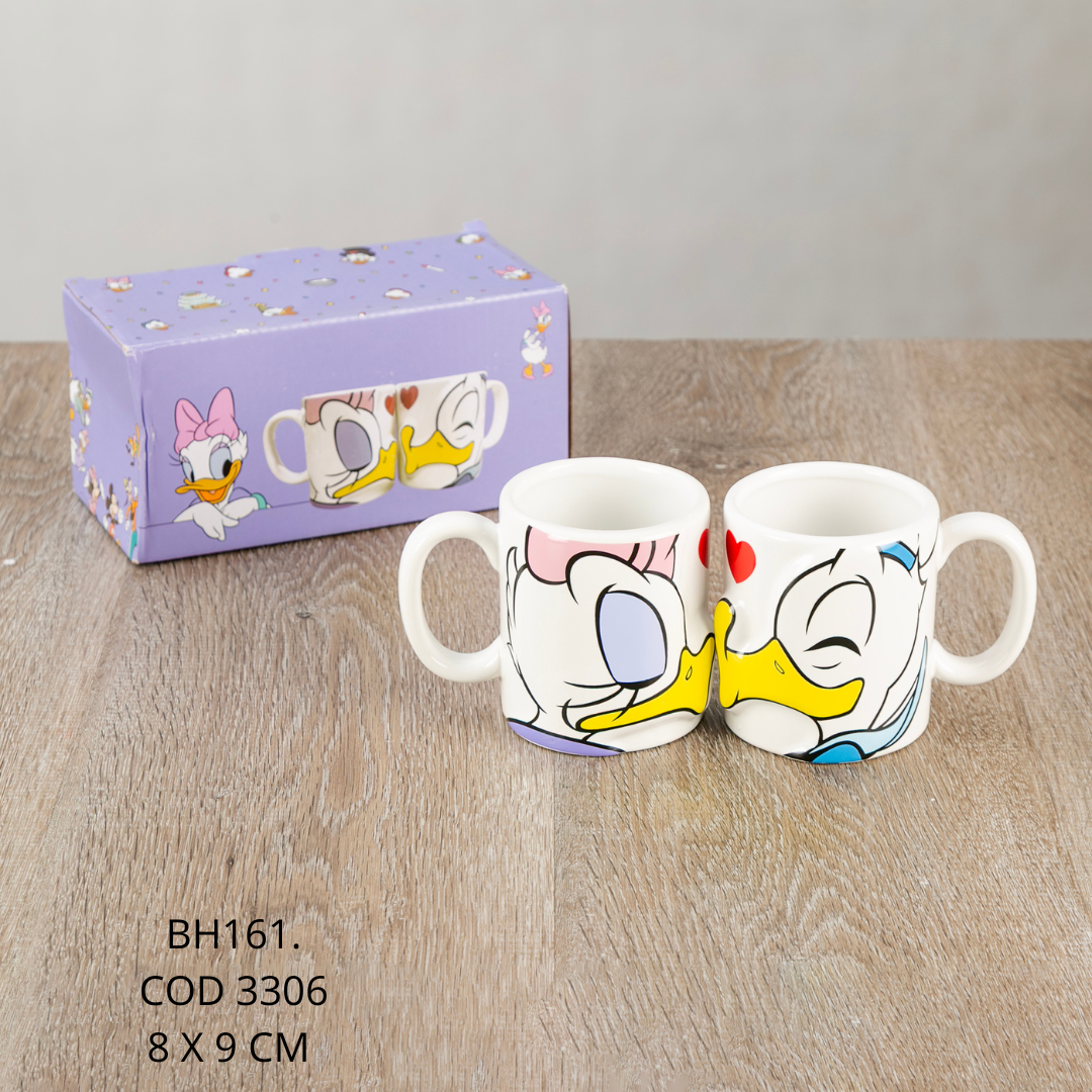 Set de pocillos con los encantadores diseños de Pato Donald y Daisy, perfectos para parejas. Cada taza destaca colores vivos y detalles clásicos de los personajes, fabricadas en material resistente y de excelente acabado. Ideales para compartir momentos especiales con estilo y ternura. ✨