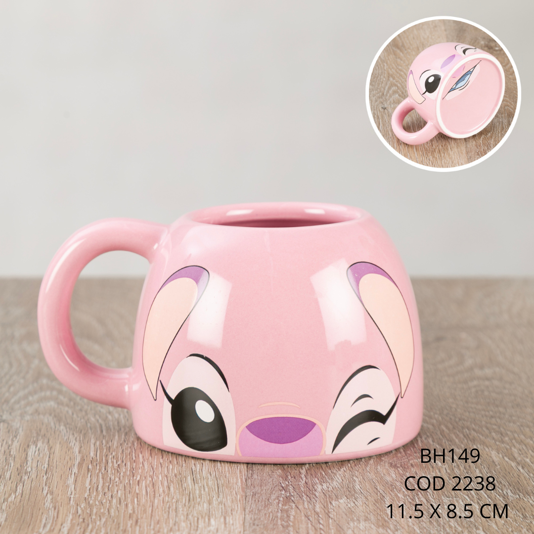 Pocillo con el tierno diseño de Angel, elaborado en material resistente y con colores suaves que resaltan su encanto característico. Perfecto para disfrutar tus bebidas favoritas mientras añades un toque dulce y adorable a tu rutina. ✨