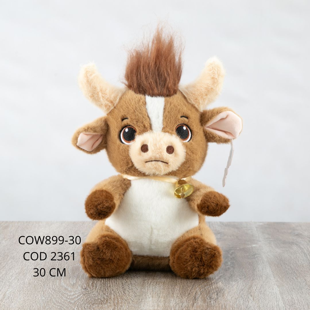 Un toro de peluche de 30 cm , suave y esponjoso al tacto, con un diseño tierno y encantador. Sus detalles y expresión lo hacen perfecto para abrazar o como un lindo detalle especial .